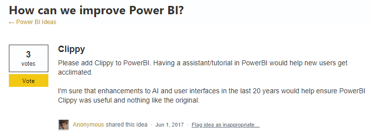 UPDATE: Clippy for Power BI was our April Fools joke, but the feedback has been so positive that we might just do it if demand is high enough. Follow us on Facebook, Twitter, or Linkedin, and let us know how badly you want Clippy back.