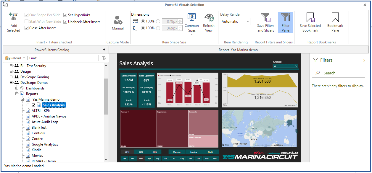Luckily, there’s a way to add Power BI to Word and make the process as easy as inserting a picture in your documents. PowerBI Tiles Pro is an Office 365 add-in by our products team that lets users navigate their Power BI workspaces from inside PowerPoint, Outlook, or Word, and insert Power BI reports into PowerPoint presentations, Outlook emails or Word documents as high-resolution screenshots.